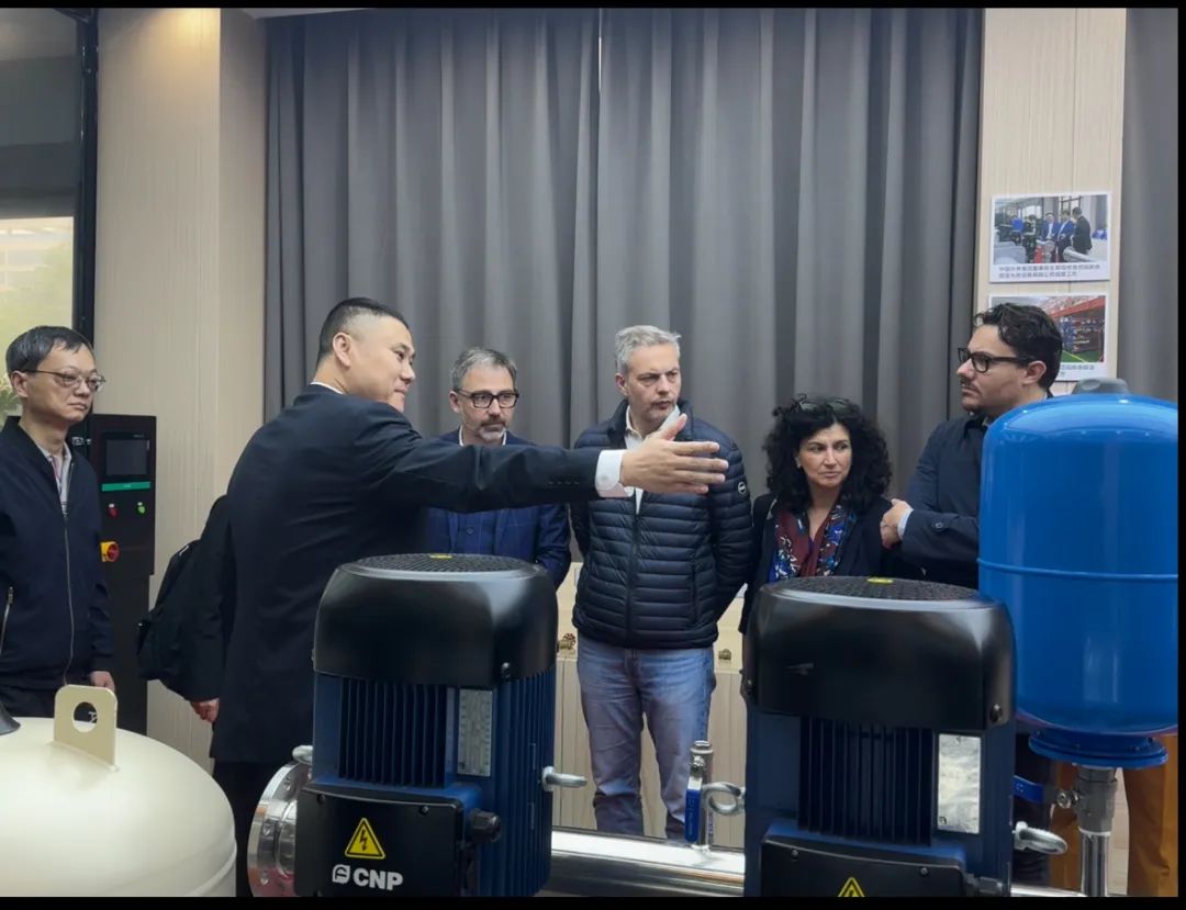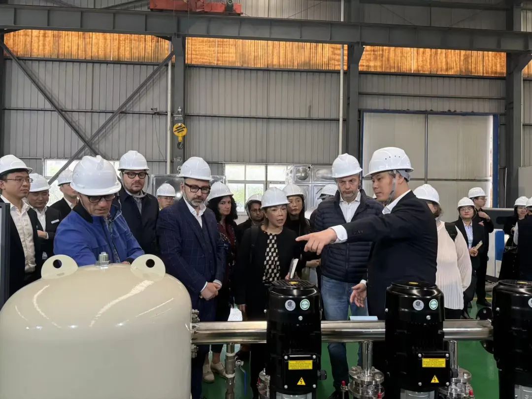 市長斯蒂凡諾先生一行先后參觀我司的展廳、二次供水設(shè)備生產(chǎn)車間,了解二次供水設(shè)備的運用領(lǐng)域及生產(chǎn)工藝,在總經(jīng)理陳科宇的介紹下,市長斯蒂凡諾先生一行對二供產(chǎn)品精細化的生產(chǎn)工藝為之贊嘆,同時也對我司生產(chǎn)車間的環(huán)境管理進行夸贊。