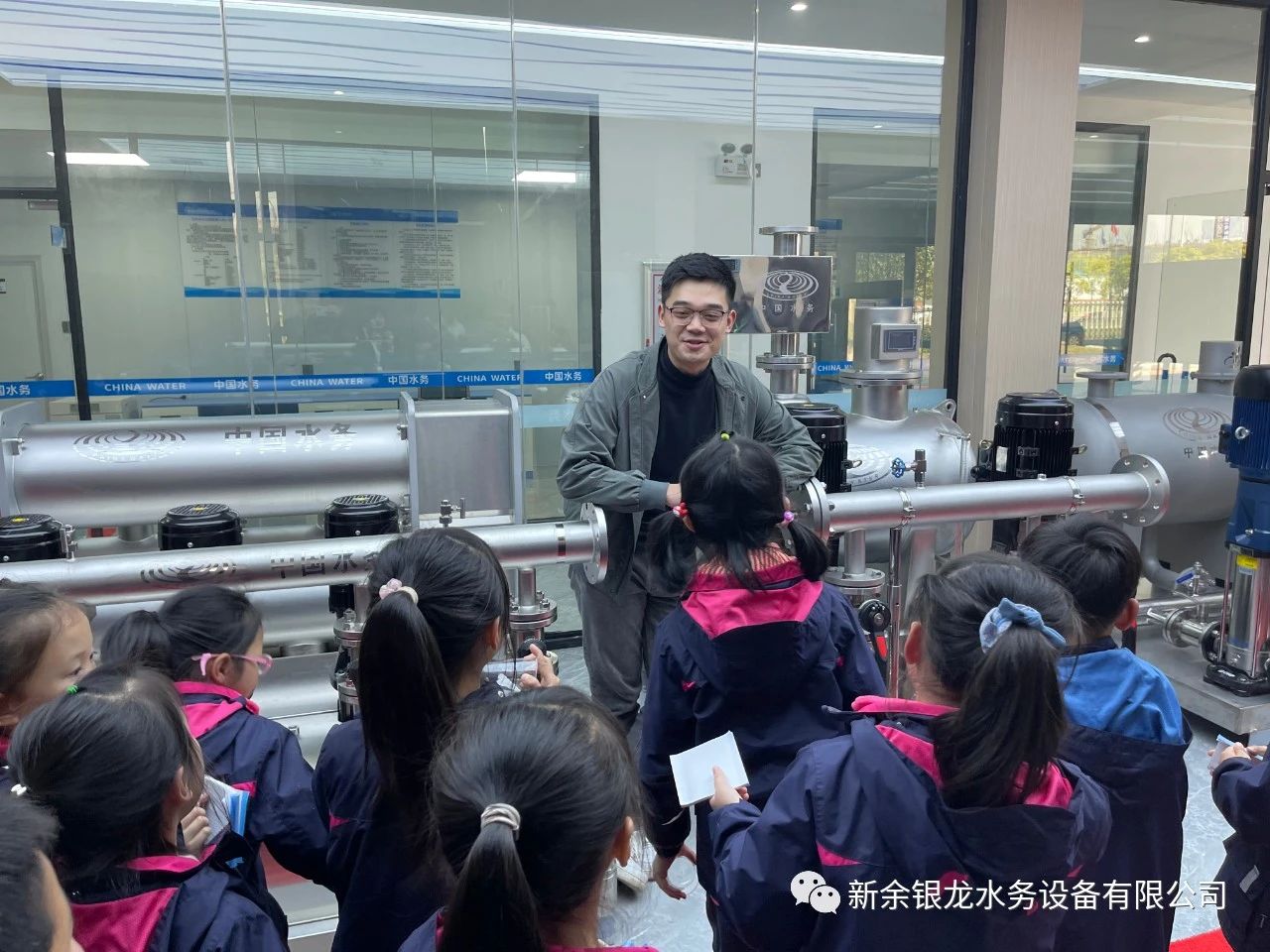 新余百樹小學(xué)的孩子們?cè)诶蠋煹膸ьI(lǐng)下,來(lái)到新余銀龍水務(wù)設(shè)備有限公司參觀我司二次供水設(shè)備