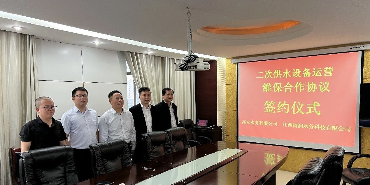 2023年4月18日,二次供水設(shè)備運(yùn)營(yíng)維保合作項(xiàng)目在高安水務(wù)有限公司成功簽約。我司子公司江西情潤(rùn)水務(wù)科技有限公司與高安水務(wù)有限公司簽訂了為期10年的二次供水設(shè)備運(yùn)營(yíng)維保合作協(xié)議,成為情潤(rùn)水務(wù)在二供運(yùn)維行業(yè)領(lǐng)域新的里程碑。高安水務(wù)總經(jīng)理羅四平、常務(wù)副總胡曉東、我司執(zhí)行總經(jīng)理兼情潤(rùn)水務(wù)總經(jīng)理何輝及雙方公司相關(guān)人員出席了簽約儀式。