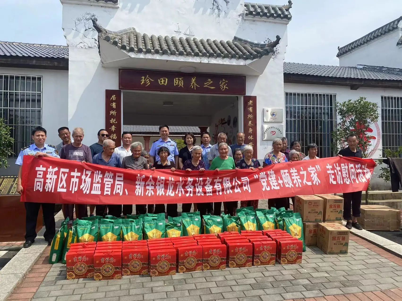 秋高氣爽,桂花飄香,在佳節(jié)來臨之際,高新區(qū)市場監(jiān)督管理局劉局、汪局等領(lǐng)導(dǎo)與新余銀龍水務(wù)設(shè)備有限公司副總經(jīng)理李軍華到水西鎮(zhèn)珍田村“頤養(yǎng)之家”進(jìn)行扶貧走訪活動。給“頤養(yǎng)之家”的老人們送上米,油,月餅等慰問品;并通過村委向頤養(yǎng)之家捐贈愛心扶貧款。