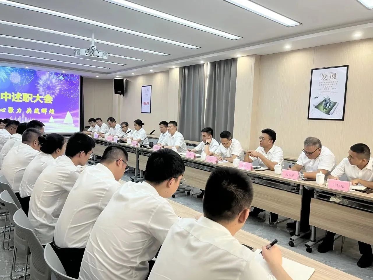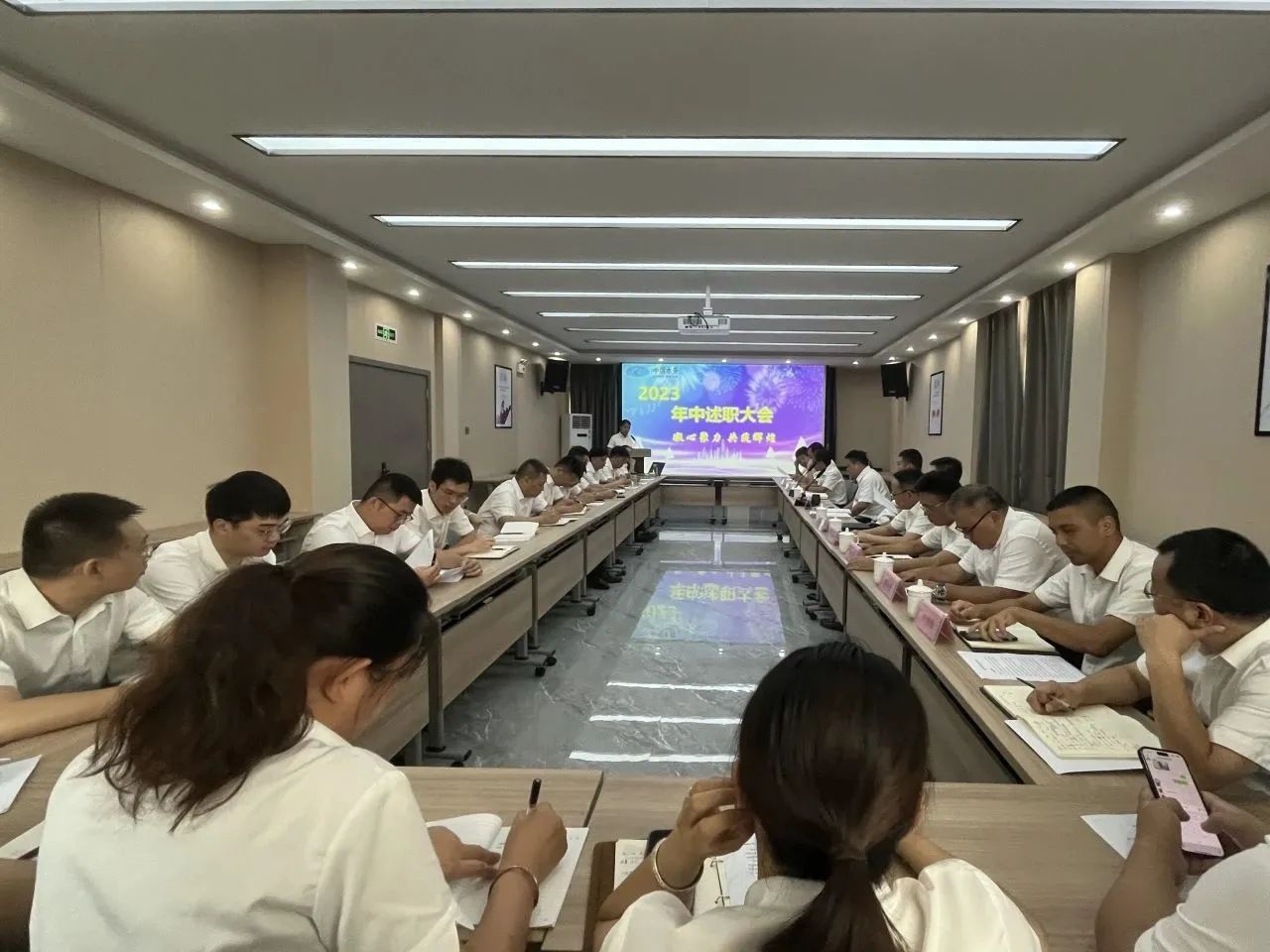 2023年8月4日上午,我司2023年年中述職報(bào)告暨下半年工作規(guī)劃會(huì)順利召開(kāi)。會(huì)議以“緊盯目標(biāo)補(bǔ)短板、壓實(shí)責(zé)任抓落實(shí)”為主題,總結(jié)了上半年工作,分析評(píng)估了各項(xiàng)工作的成果,部署了下半年重點(diǎn)工作。公司經(jīng)營(yíng)班子、中層以上管理人員參加會(huì)議。